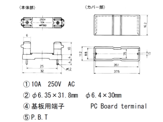 6*30 PCB板安裝保險絲座 MF-550&550C 10A250V
