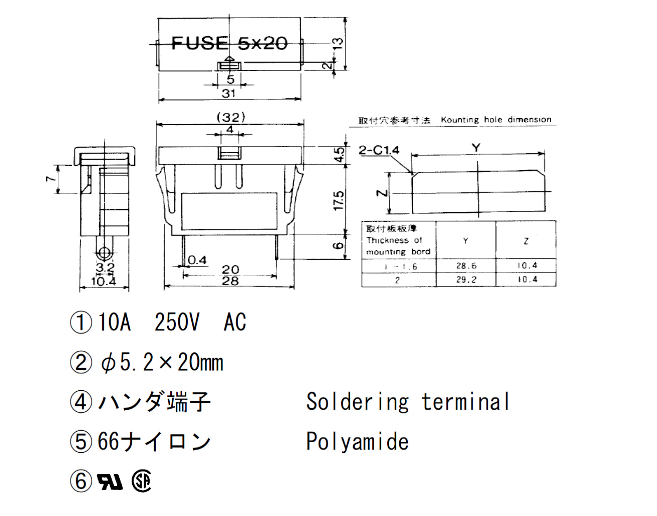 5*20 PCB板安裝保險(xiǎn)絲盒 MF-564 10A250V