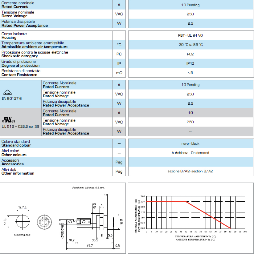 5*20 面板安裝保險絲座 PTF-70 S VDE UR CSA 10A250V