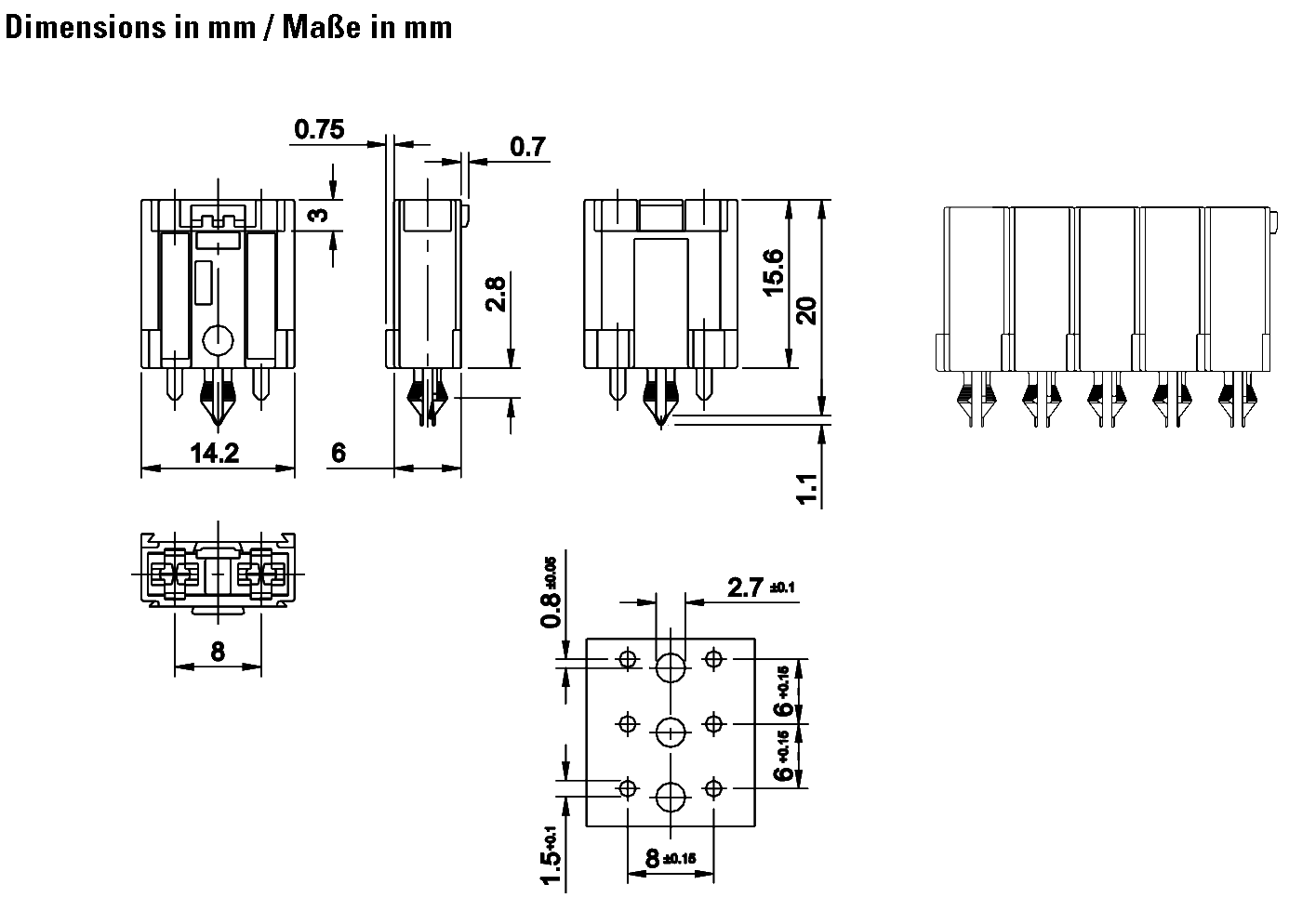 ? Made for installing a MINI ® blade fuse on a printed circuit board (PCB) ? Multiple MINI ® 0297 Series fuse holders can be mounted in a row ? Heat-resistant, black, glass-fiber-reinforced PBT/NILO body with a UL 94 V-0 flammability rating is ideal for automotive applications