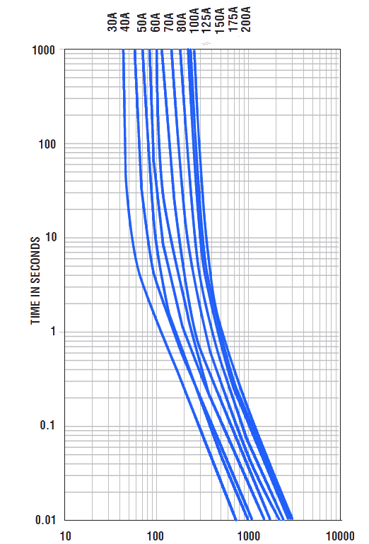 Specifications Interrupting Rating: 1000A @ 58 VDC Voltage Rating: 32/48/58 VDC Operating Temperature Range: -40?C to + 125?C Housing: Transparent Nylon Composite Terminal: Tin plated Copper Mounting Torque M5: 4.5 Nm +/- 1Nm Complies with: ISO 8820-5 UL 248 Special Purpose Fuses Time-Current Characteristics