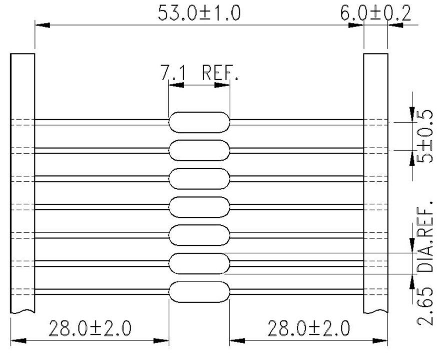 例子[example]: 2SMT/2T 3A 125V 1)系列號 Part Number 2)額定電流 Rated Current 1) 2) 3) 3)額定電壓 Rated Voltage 1-2 額定電流和額定電壓 Rated Current And Voltage 額定電流: 32mA~15A Rated Current: 32 mA~15A 額定電壓;125V/250V/400V AC Rated Voltage:125V/250V/400 AC 1-3標示Marking 保險絲上需有下列標示 The fuse shall have the following marking: 規(guī)格:特性符號+額定電流+額定電壓 Specification:Characteristic Symbol+Rated Voltage 32mA~800mA : _mA 1A~15A:_A Trade mark:The Manufacture’s Logo+Part Number+Approvals 32mA~15A:注意:對標示字樣大小沒有規(guī)定 Note:Size of the markings have not be specified. 2.適用範圍 SCOPE 適用於一般電子設備。Used in electronic equipment. 3.工程圖和結(jié)構(gòu) OUTLINE DRAWING AND STRUCTURE 3-1 工程圖(單位:mm) Outline Drawing and Dimensions(Unit:mm) ![]() ![]() ![]() 3-2結(jié)構(gòu) Structure