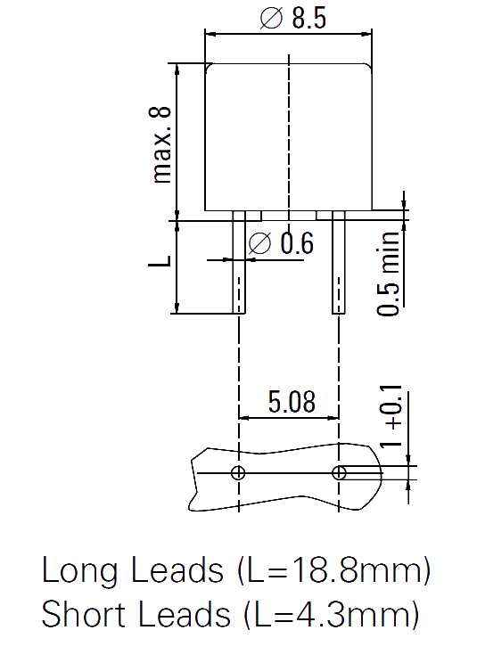 260oC, 10 sec. (IEC 60068-2-20) 350oC, ≤ 3 sec. (Soldering iron)