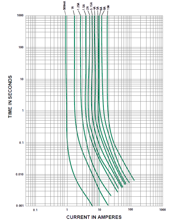 4.外觀及形狀 APPEARANCES AND CONFIGURATION 4-1外觀:不應(yīng)有破碎、明顯的汙斑 Appearances:There shall no fragmentation and of remarkable blotch. 4-2形狀:帶腳的保險絲 Configuration:Axial Leaded Fuse. 5.物理特性 PHYSICAL CHARACTERISTIC 5-1 拉力測試 Tensile test 沿端子的軸向施加10N的拉力,持續(xù)1分鐘。 Keep pulling the cap of the fuse with 10N at axial direction for 1 min. 6.電氣特性 ELECTRICAL CHARACTERISTICS 熔斷/電流特性: Pre-Arcing Time/Current Characteristic a、Breaking capacity(分?jǐn)嗄芰Γ?Time Lag and Fast Acting)