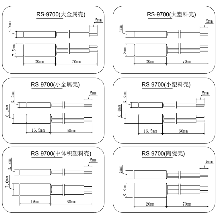 注:1.導(dǎo)線長(zhǎng)度可以根據(jù)用戶要求訂做;2.該產(chǎn)品外殼與產(chǎn)品電路中的底座支架直接接觸,故金屬外殼產(chǎn)品在接入電路時(shí)其外殼會(huì)帶電,所以在安裝時(shí)請(qǐng)使用出廠配套的絕緣套管。