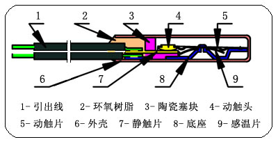 Thermal Protectors of RS-9700 series are sensitive to heat.They have marked such as smallness in size,insulated case,action rapidly,enough contact capacity,long life atc.They are widely used to protect against over heat and over current in motor.heated appliance,Fluorescent Ballast,transformer,Auto motor,IC,and electric appliance.