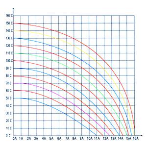 The critical current & ambient temperature curve(Note:the current will effect to the open temperature)