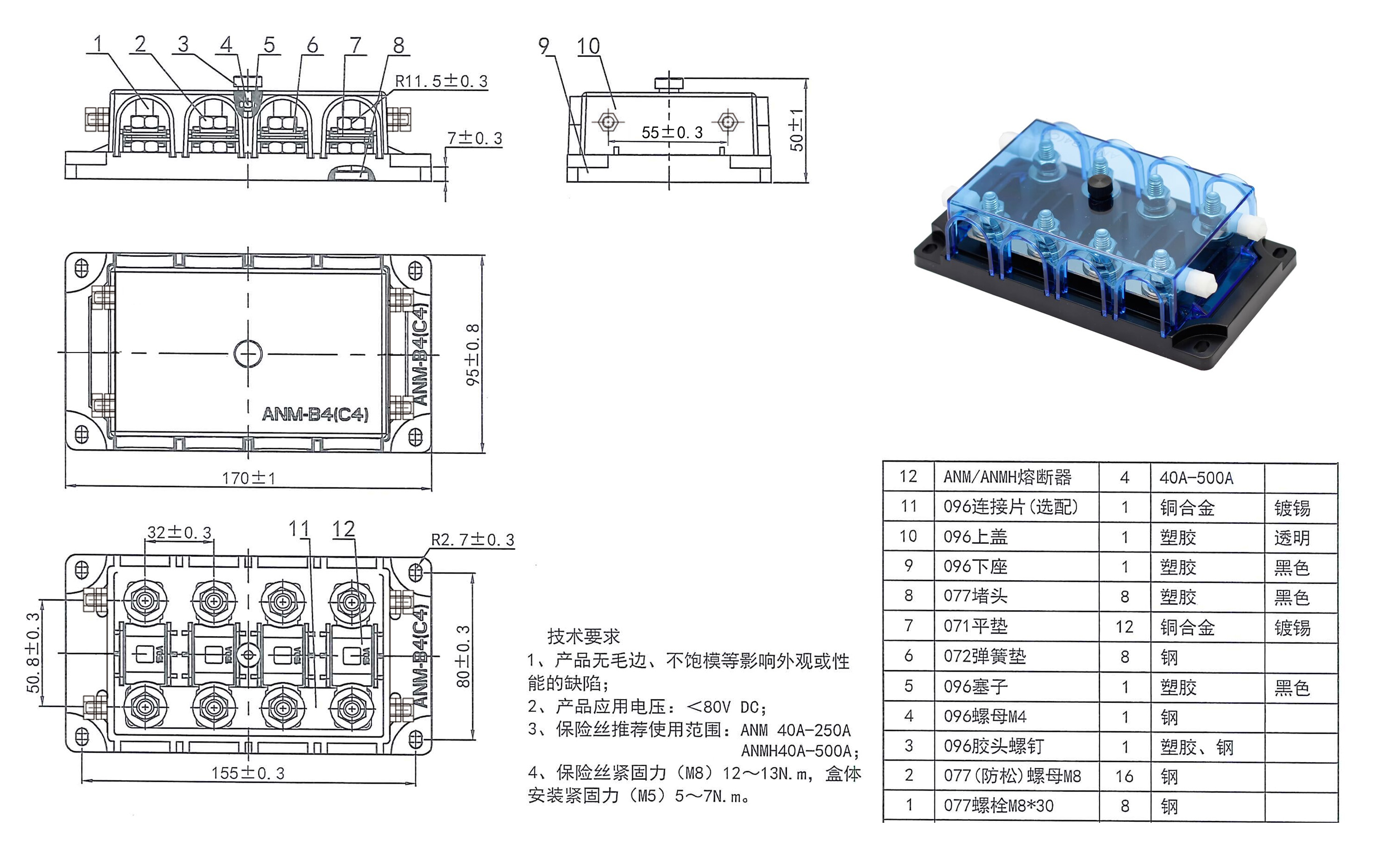四路中號(hào)叉栓保險(xiǎn)絲座ANM-B04