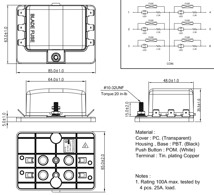 1.適合船舶、房車或外部裝修類型應(yīng)用的保險(xiǎn)絲盒,透明防護(hù)罩防水防塵、污垢進(jìn)入 2.保險(xiǎn)絲損壞時,紅色 LED 指示, 按下閂鎖即可輕鬆打開
