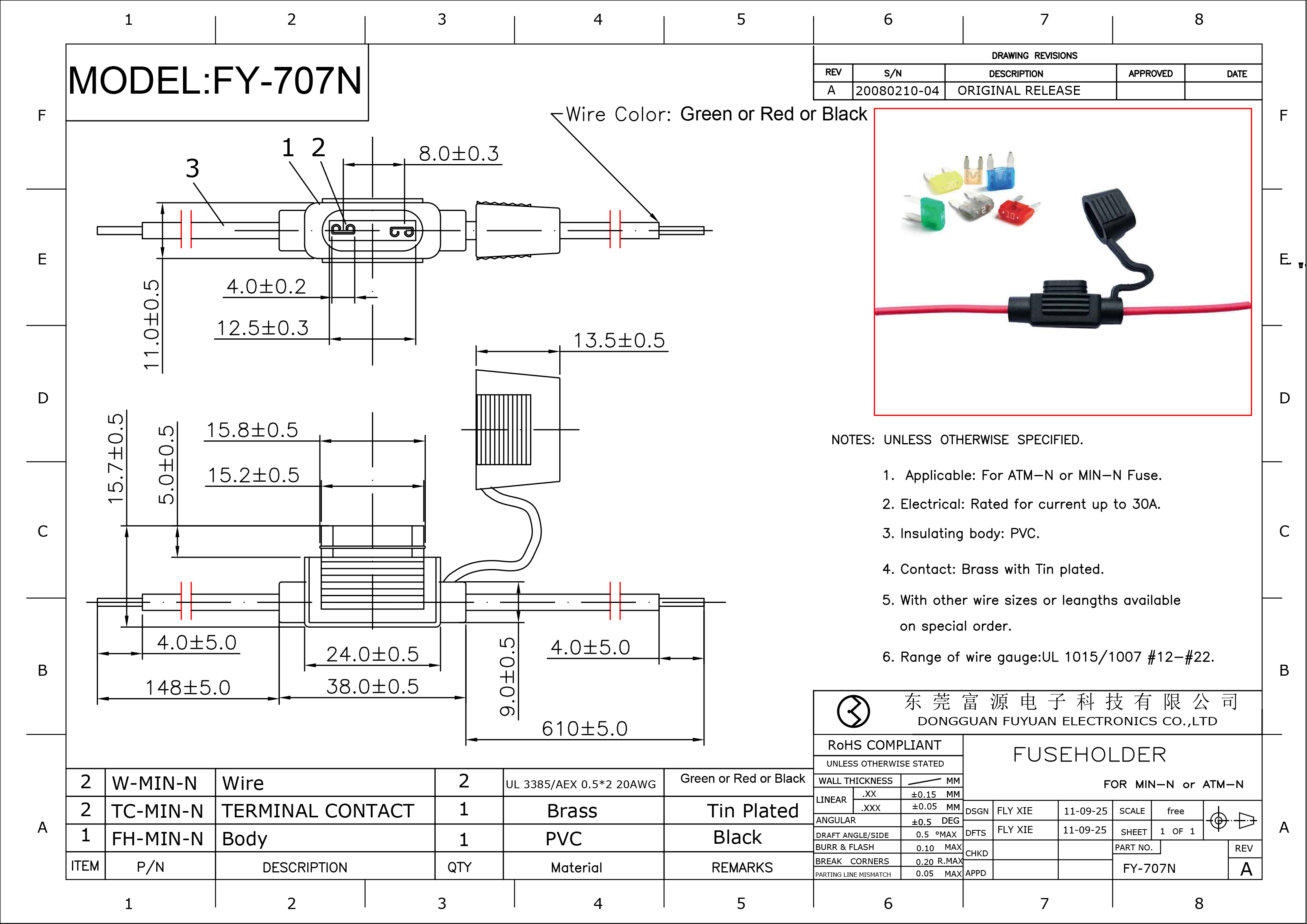 小號插片防水保險絲座 FY-707N CE IP65