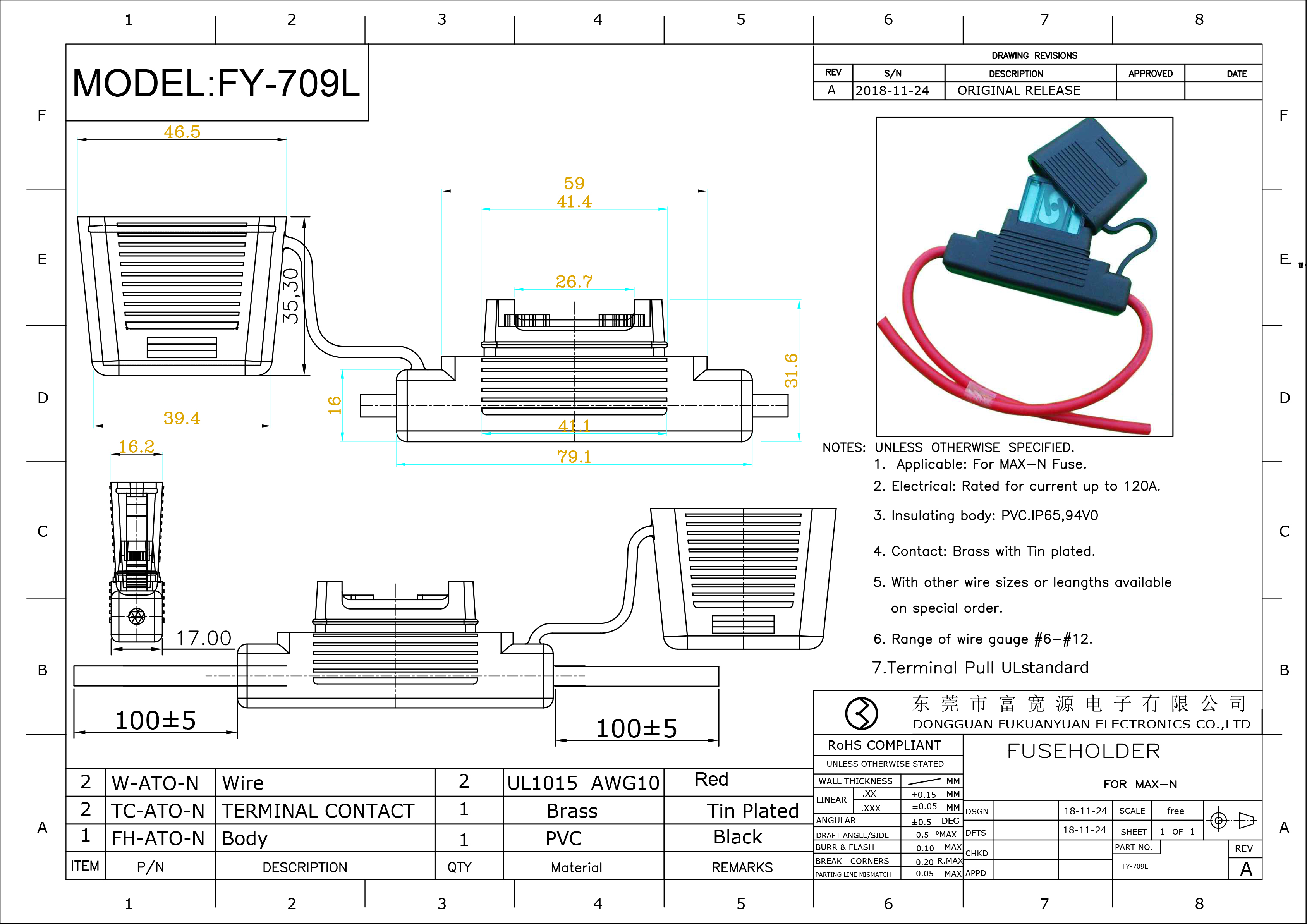 MAX Automatic Fuse holder,Max 60A ,Voltage 125VDC,which is widely applied inEngineering vehicle circuit protection 4、防水等級:IP65 Waterproof grade: IP65